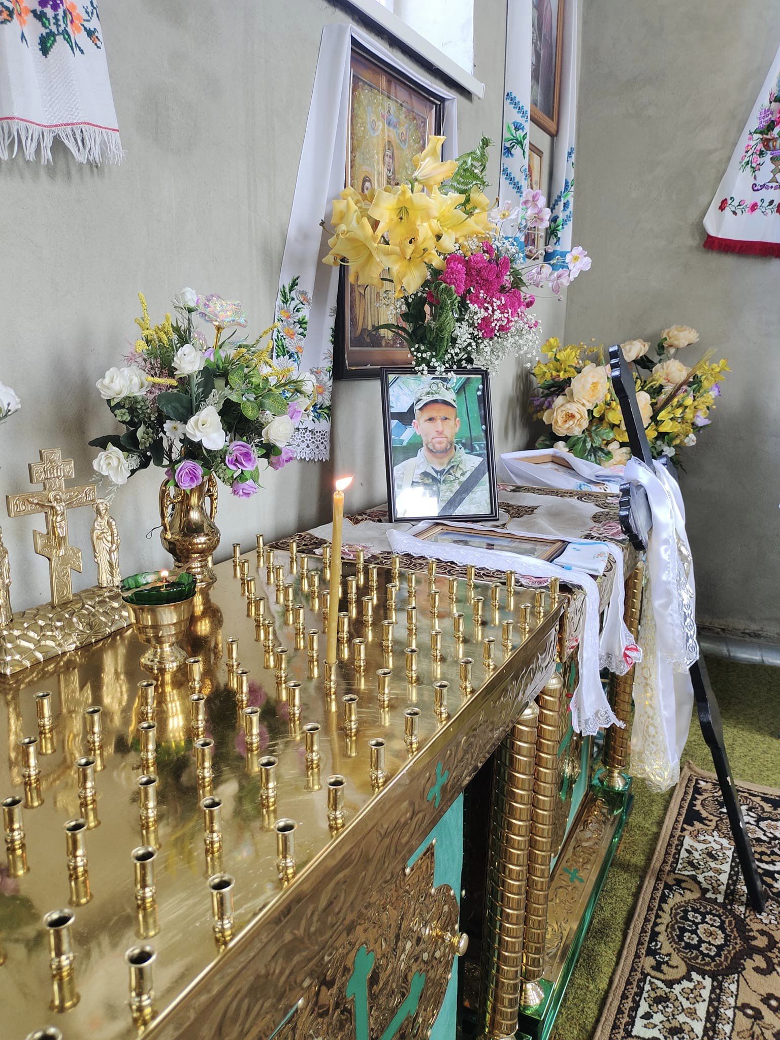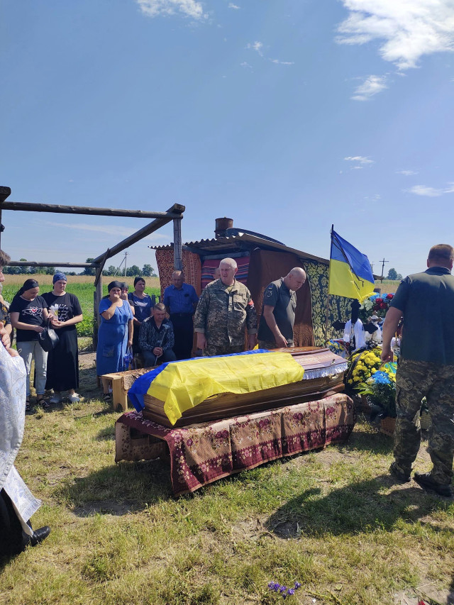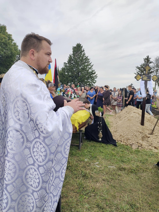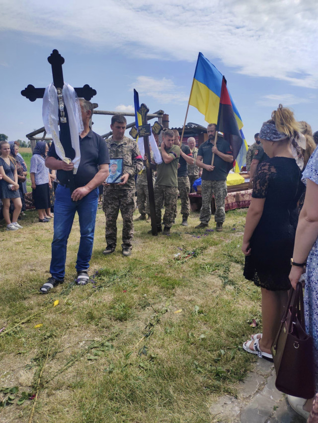 Село зустрічало свого Героя живим коридором слави, навколішки, зі схиленими головами. Дорогу ще від кременецького повороту вистелили живими квітами.Чин відспівування у храмі Святого духа ПЦУ звершили декан Михайлівського округу Микола Царик, настоятель Ігор Мельхов та духовенство Рожищенського благочиння.У Героя залишилися 11-річна донька Софійка та 10-річний син Володимир. Саме йому керівник військового почту вручив Державний Прапор України зі словами: