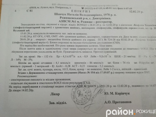 Наталія Шевчук – жителька села Дмитрівка Рожищенського району, реєстраторка Рожищенської амбулаторії № 1 У жінки виявили лімфому Ходжкіна. Тож рідні, друзі та колеги просять допомогти Наталії фінансово.