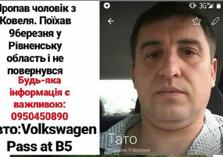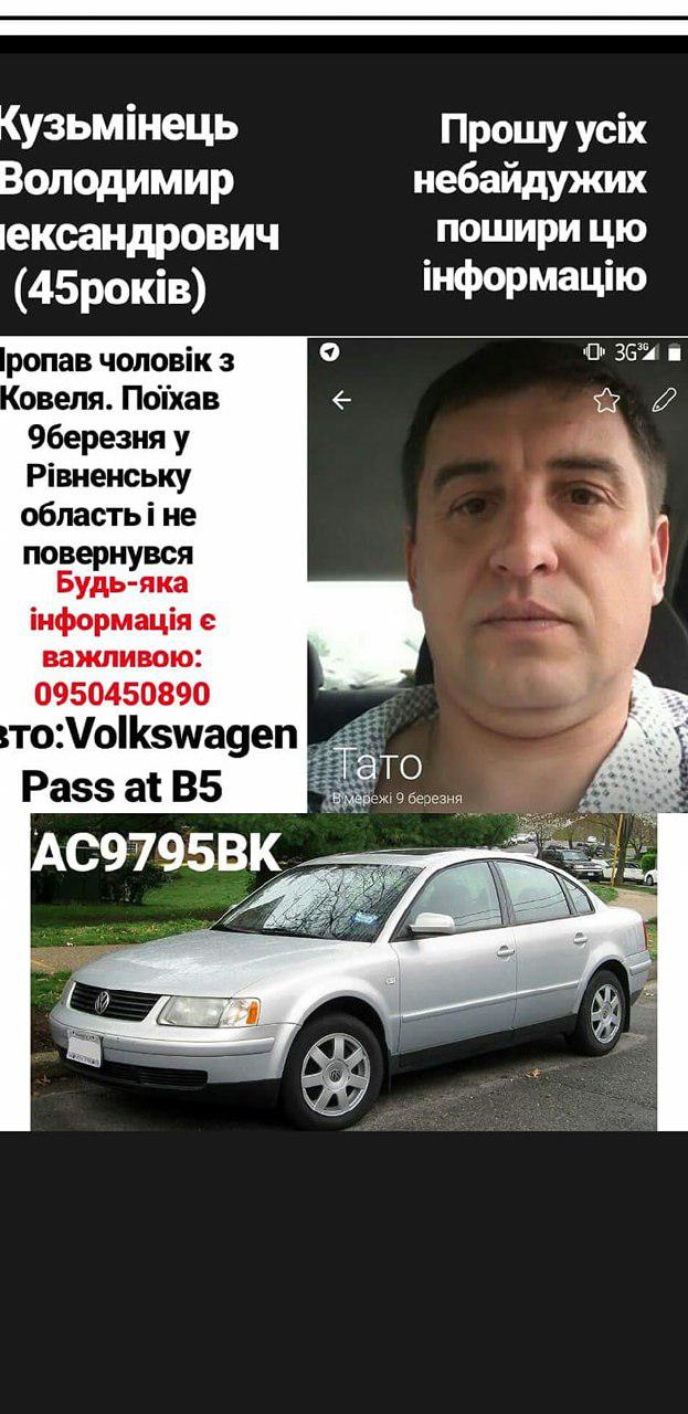 Чоловік 9 березня на сірому Volkswagen Passat поїхав у Рівненську область і не повернувся.