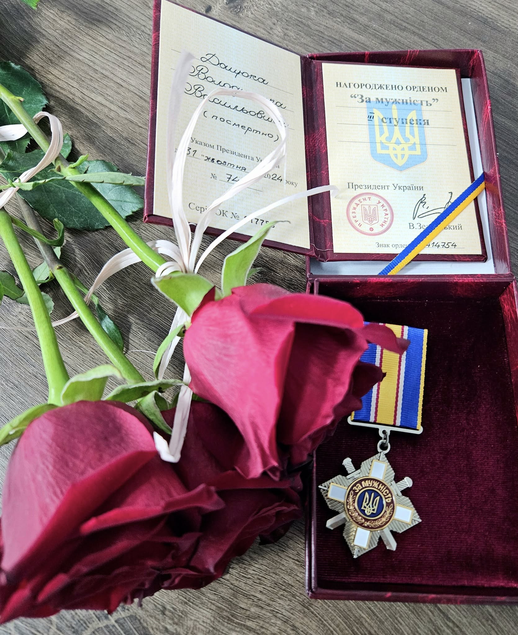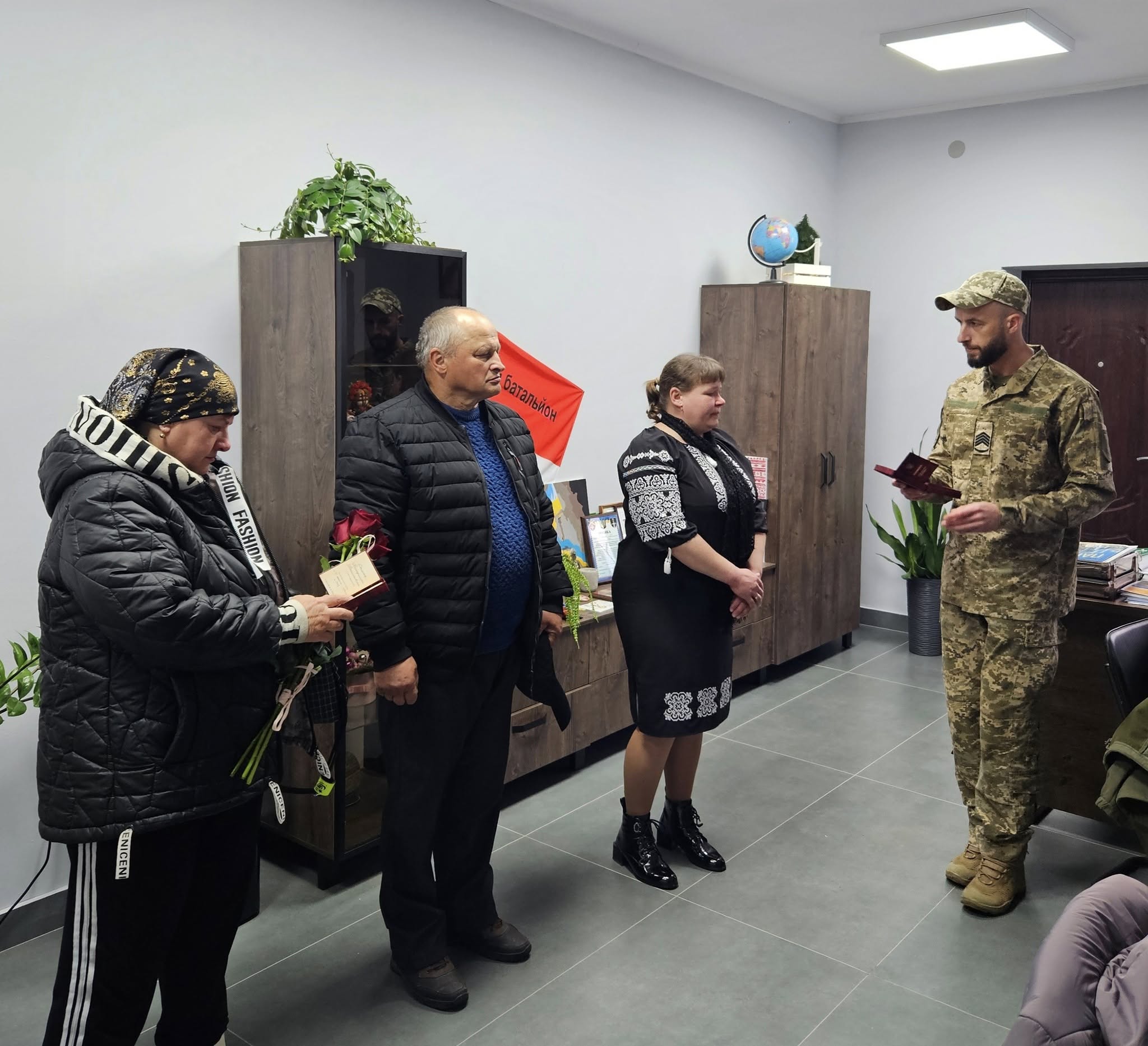 Сьогодні нагороду його дружині Ірині вручили представники військового комісаріату та місцевої влади. Почесну місію виконав головний сержант, інструктор відділу рекрутингу третього відділу Володимир-Волинського районного ТЦК та СП Артур Юрчук.