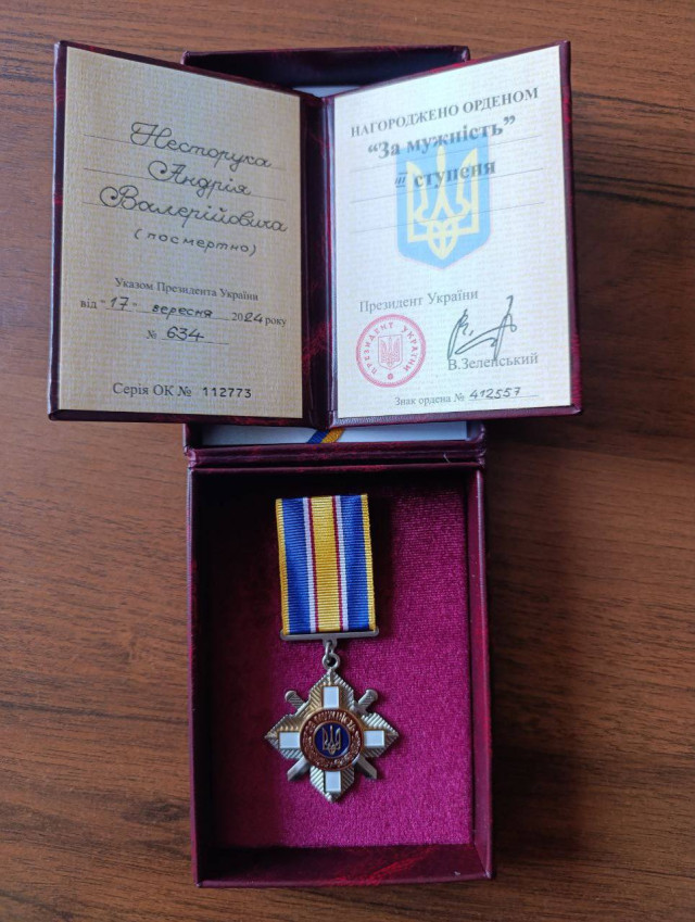 Андрія Несторука також було нагороджено медаллю «Знак доблесті» (посмертно).