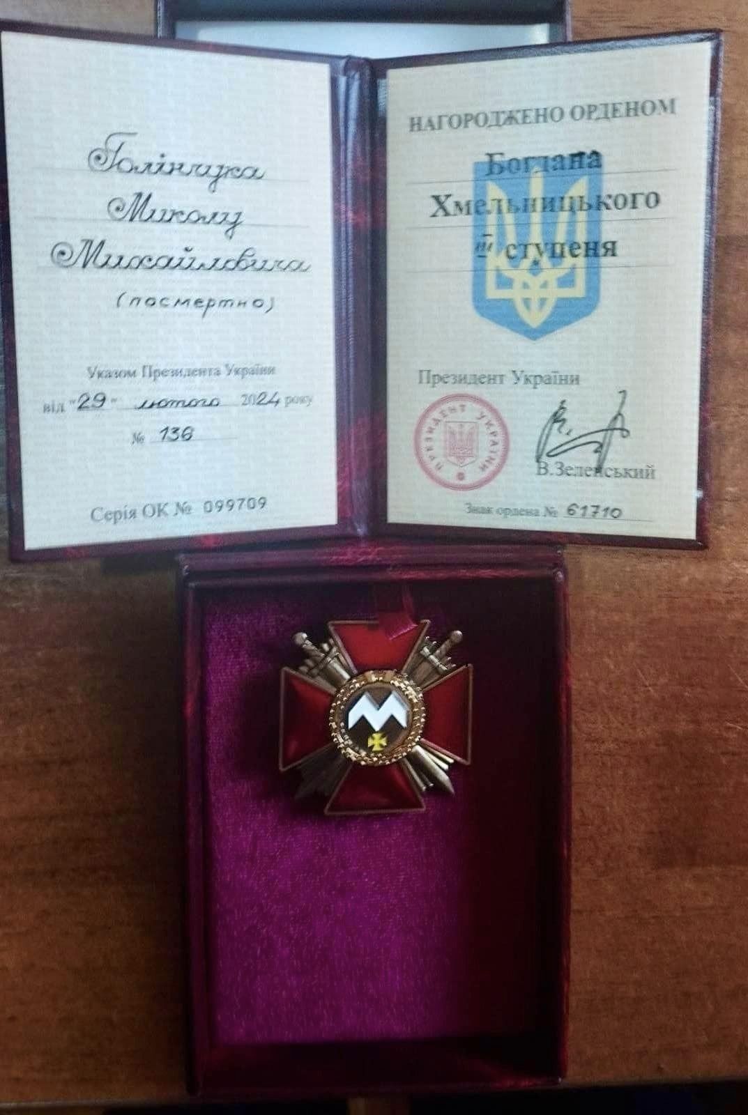 Орденом Богдана Хмельницького ІІІ ступеня нагороджено посмертно: Голінчука Миколу Михайловича, нагороду вручено сину Даміану.