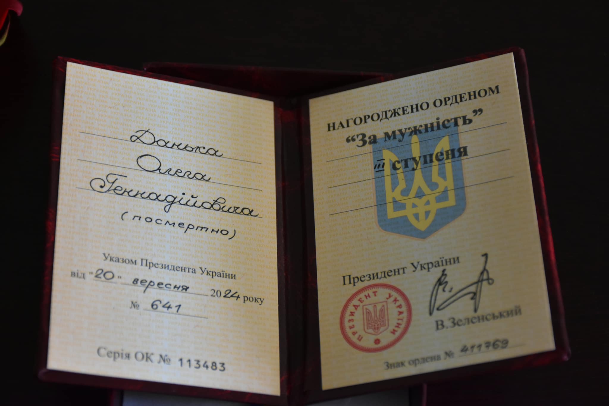 Луцький міський голова Ігор Поліщук зустрівся з членами родини загиблого військовослужбовця Олега Данька, і вручив їм орден «За мужність» ІІІ ступеня, присвоєний захиснику, на жаль, посмертно.