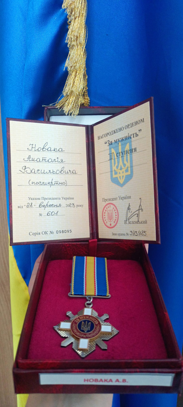 Рідним загиблого на війні волинянина Анатолія Новака вручили посмертну відзнаку