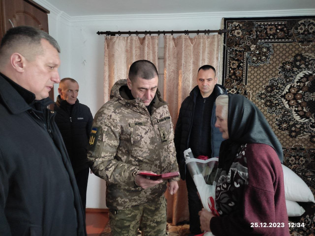 25 грудня селищний голова Богдан Іус та начальник Першого відділу Володимирського РТЦК та СП – підполковник Ігор Шепєлєв урочисто вручили нагороду членам сім’ї загиблого Військовослужбовця – матері Любові Володимирівні, сестрам Світлані і Надії, брату Василю.