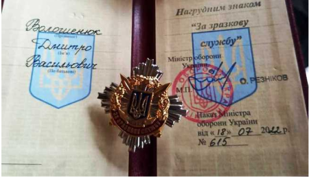 Нагрудним знаком «За зразкову службу» посмертно нагороджено військовослужбовця Дмитра Волошенюка, якого пов'язували родинні зв'язки із селом Нуйно Сошичненської ТГ Камінь-Каширського району.