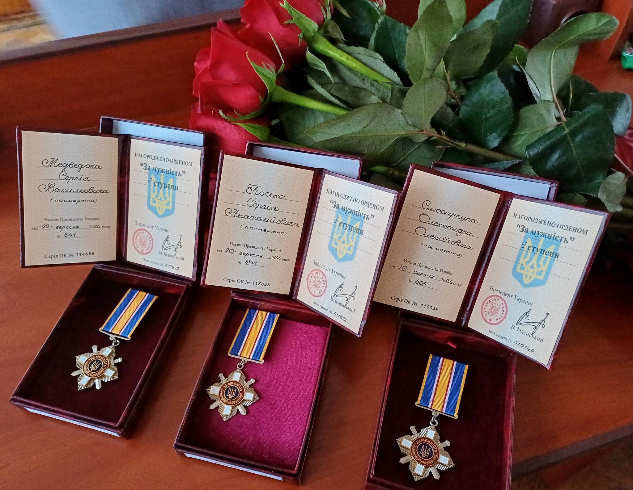 30-річний розвідник розвідувального відділення Сергій Косько став на захист України на початку березня 2022 року, службу проходив у 14-й окремій механізованій бригаді імені князя Романа Великого. 16 липня 2023 року під час виконання бойового завдання на Харківщині в результаті ворожого обстрілу відважний воїн загинув.Сергій Медведюк з перших днів повномасштабного вторгнення вступив до добровольчого формування громади, а вже з вересня 2022 року 27-річний старший бойовий медик боронив Вітчизну на найгарячіших напрямках фронту. 25 листопада 2023 року в результаті ворожого обстрілу під час виконання бойового завдання на Харківщині сміливий, відданий син свого народу загинув.Олександр Слюсарчук народився та проживав на Рівненщині у місті Вараш, звідки 24 серпня 2023 року його було мобілізовано до лав оборонців для захисту держави від окупантів. 31 травня 2024 року 38-річний оператор парашутно-десантного взводу під час виконання бойового завдання на Донеччині загинув. Батьки хороброго солдата проживають у селі Новосілки. Тут на місцевому кладовищі похований і їхній син-Герой.Сьогодні Маневицький селищний голова Олександр Гаврилюк, представник Першого відділу Камінь-Каширського районного територіального центру комплектації та соціальної підтримки, старший лейтенант Василь Ремінський вручили державні відзнаки рідним Героїв. Хвилиною мовчання вшанували пам’ять усіх патріотів української держави.Після вручення державних нагород старости сіл Людмила Шилак, Віталій Базюк та Сергій Ліщук разом з рідними відвідали могили захисників та поклали квіти.