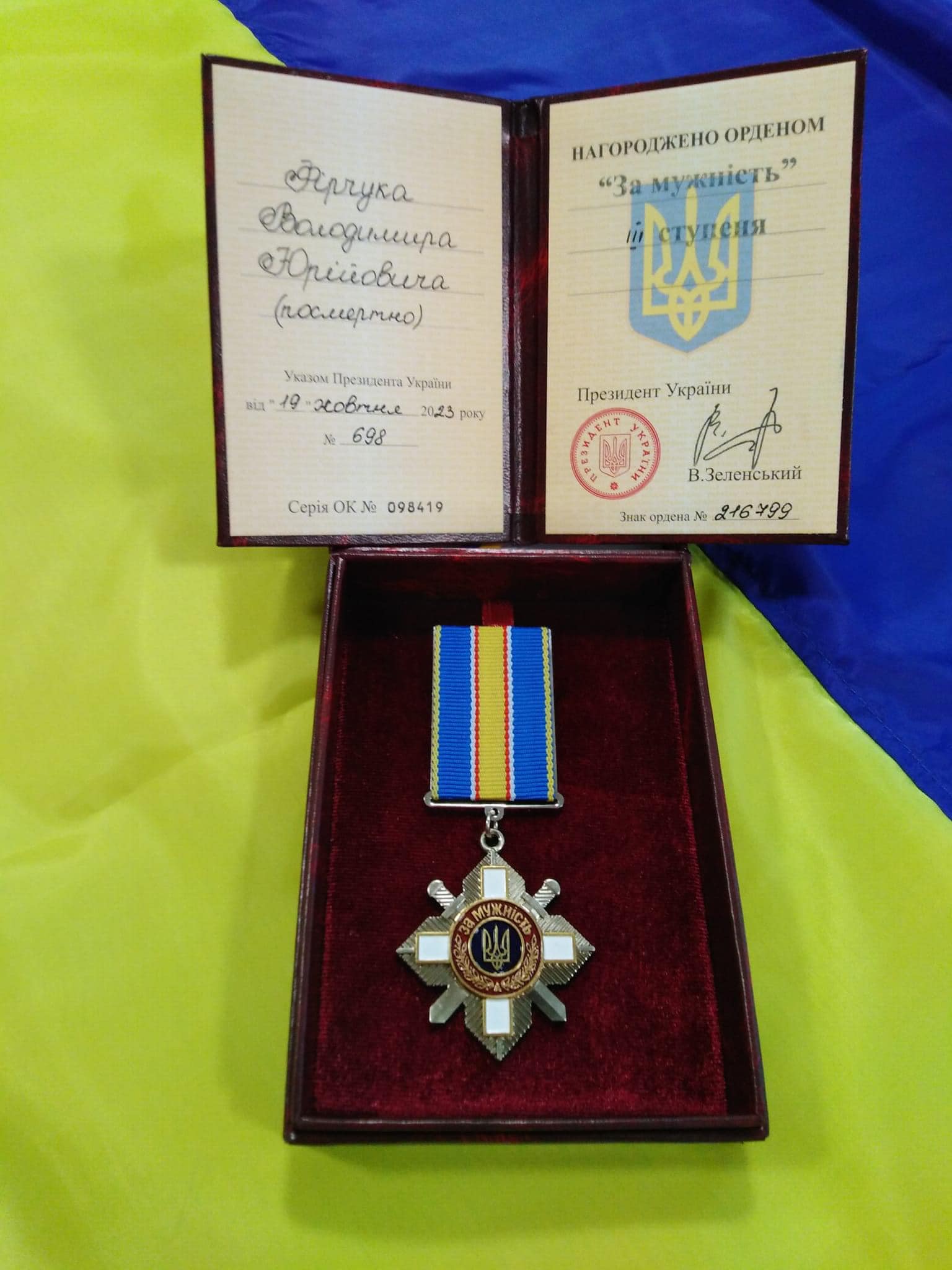 26 березня на Волині родинам загиблих Героїв Володимира Фірчука та Євгена Куденьчука вручили ордени «За мужність» III ступеня начальник Другого відділу Луцького РТЦК та СП підполковник Валерій Захаров та Рожищенський міський голова В'ячеслав Поліщук.