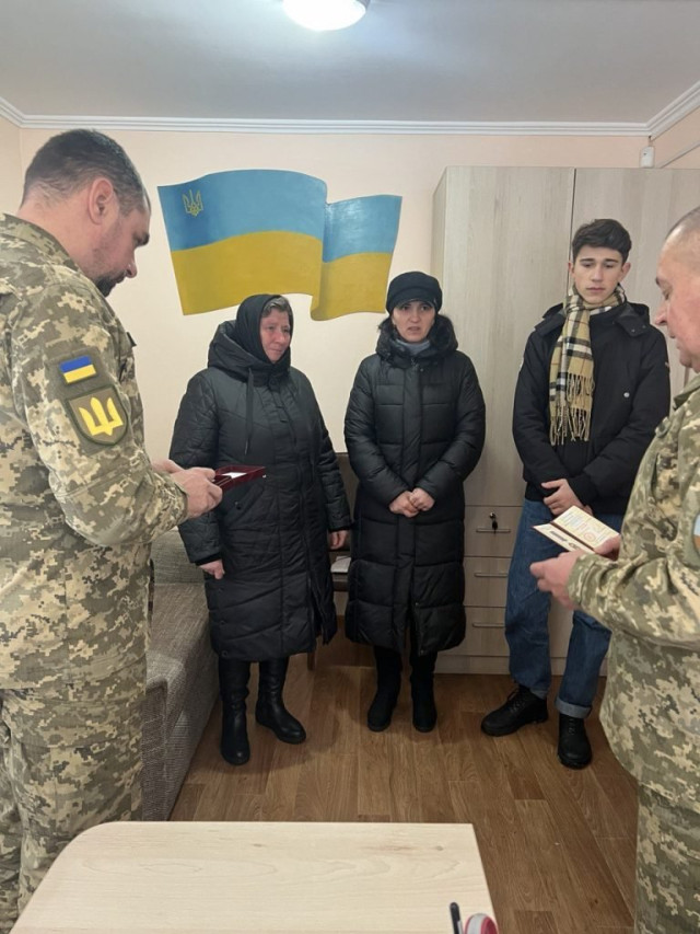 Орден «За мужність» ІІІ ступеня, якого посмертно удостоєно воїна Бориса Марчика, вручили його дружині та доньці.Медаль «За військову службу Україні», якою посмертно нагороджено захисника Валерія Швирида, вручили його старшому сину.