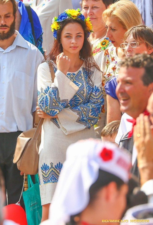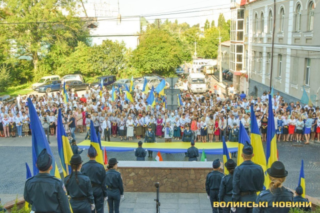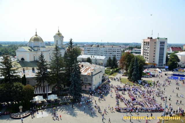 У День Незалежності сотні лучан у вишиванках утворили велетенське зображення вежі Луцького замку. Це свято відзначали разом з іноземними гостями.