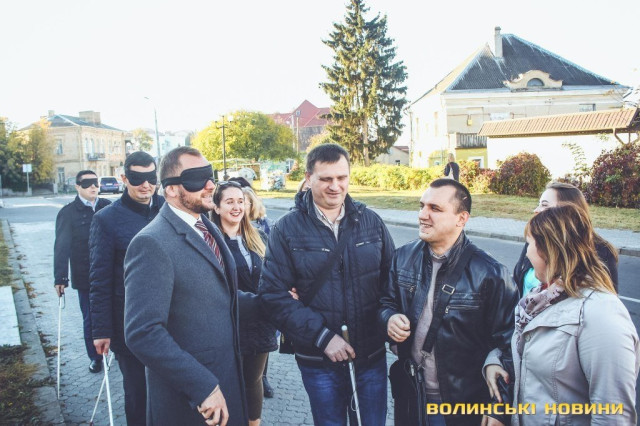Тротуари, дороги, переходи та озвучення зупинок в громадському транспорті: наскільки Луцьк доступний для осіб з порушеннями зору, досліджували радник та заступники міського голови, на один день «втративши зір» у рамках соціального експерименту «Відчуйте життя в темряві».