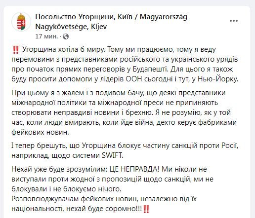 Разом з тим, Угорщина офіційно заперечує інформацію про те, що країна нібито виступає проти відключення та зазначають, що вони підтримують санкції.