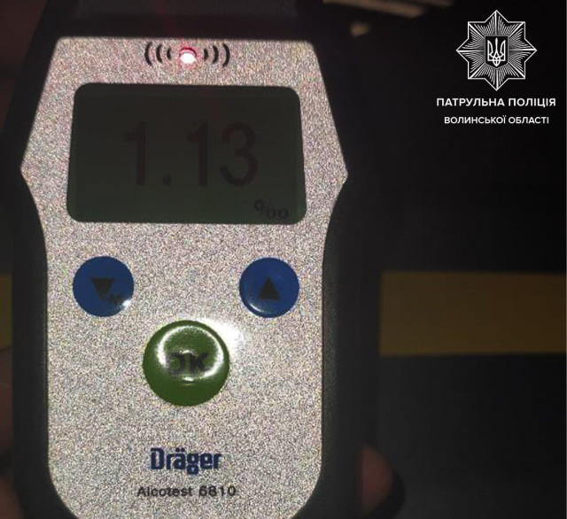 Керманич погодився пройти огляд на визначення стану алкогольного сп’яніння на місці зупинки. Результат – 1,13 проміле, що в 5 разів перевищує допустиму норму.