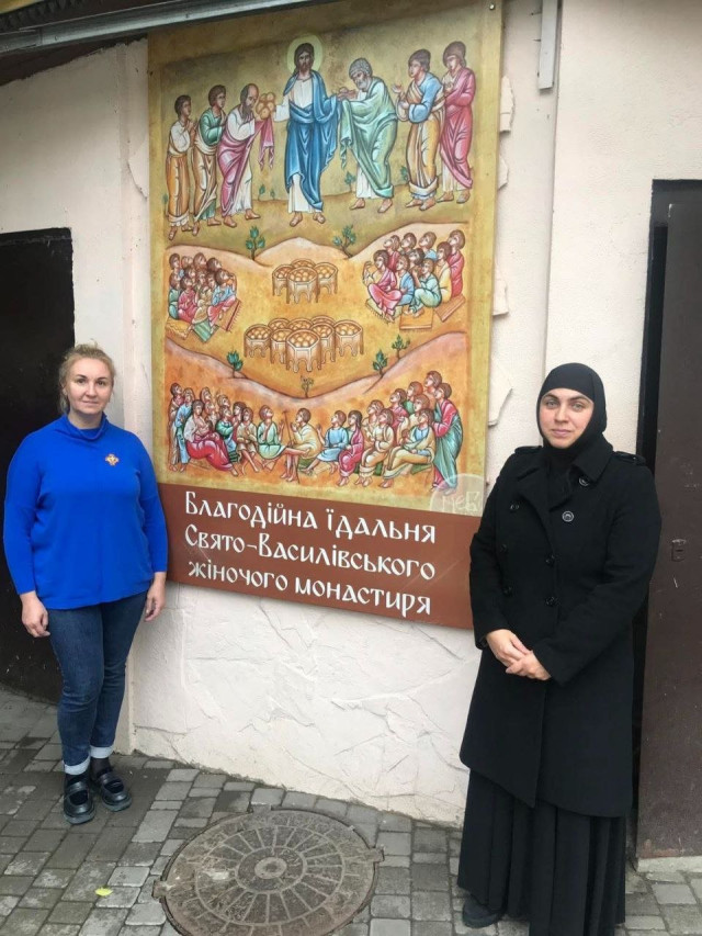 Їдальня розташована у підземеллі Свято-Василівського жіночого монастиря на вулиці Парковій, 2. Це окреме приміщення, облаштоване так, аби люди могли поїсти у нормальних умовах, без поспіху й тисняви.Читати ще: Вчилася на акторку, але пішла у волинський монастир: монахиня розповіла, як вирішила прийняти постриг