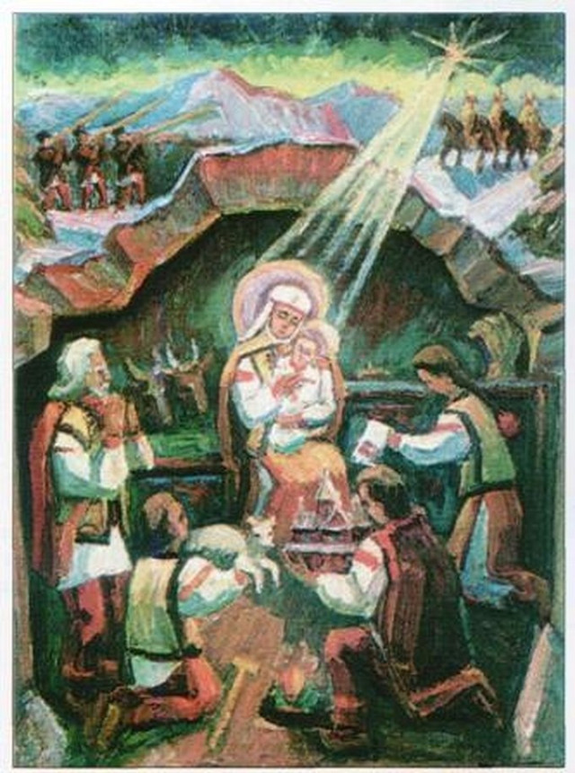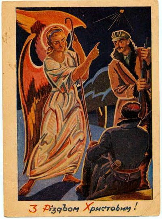 Далі – листівки з інших частин материкової та діаспорної України початку і середини ХХ століття.Листівка з Буковини, надрукована за кордоном. Фото з WikipediaЛистівка авторства української художниці з Бережан на Тернопільщині Олени Кульчицької, адресована мешканцю містечка Мостиська. Тут і далі – photo-lviv.in.uaЛистівка з КоломиїПетро Андрусів, український художник в еміграції, «Рожденому поклін віддаймо»В. Мощинський, «Спочив на сіні Бог необнятий»Українська повстанська листівка, 1952 рікЮрій Костів, «З Різдвом Христовим»«Нова радість стала», діаспорна листівка зі США авторства Михайла МорозаСвятослав Гординський, діаспорна листівка «Христос родився!»