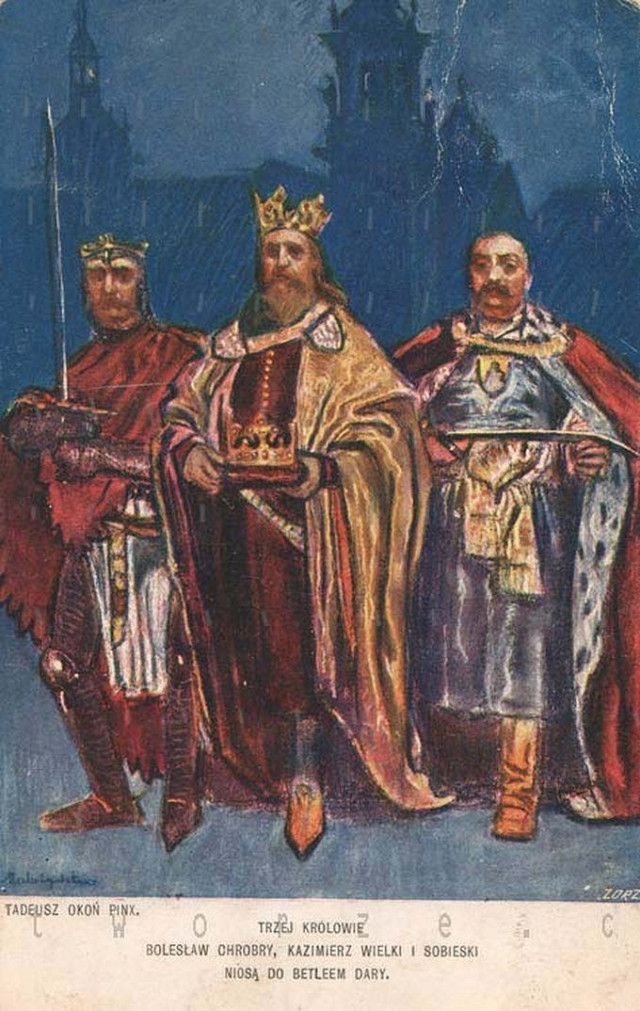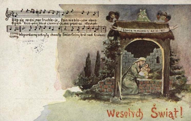 У часі міжвоєння Західна Волинь перебувала під владою Другої Речі Посполитої. Тому листівки польською мовою були поширені й на наших теренах.Стара польська листівка з текстом і нотами різдвяної колядки. prawicowyinternet.pl«Три королі Болеслав Хоробрий, Казимир Великий і Ян Собеський несуть до Вифлеєма дари», prawicowyinternet.plРіздвяно-новорічна листівка, 1920-1930-ті роки. Тут і далі – фото з Polona.plЛистівка з часів міжвоєнняВітальна листівка 1920-х років