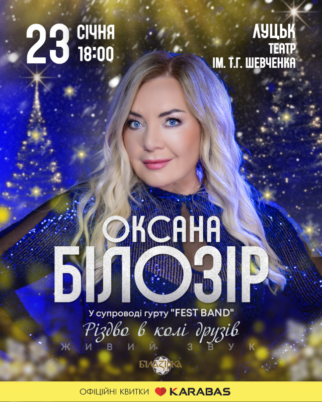 Народна артистка України Оксана Білозір запрошує на святкові концерти «Різдво у колі друзів».