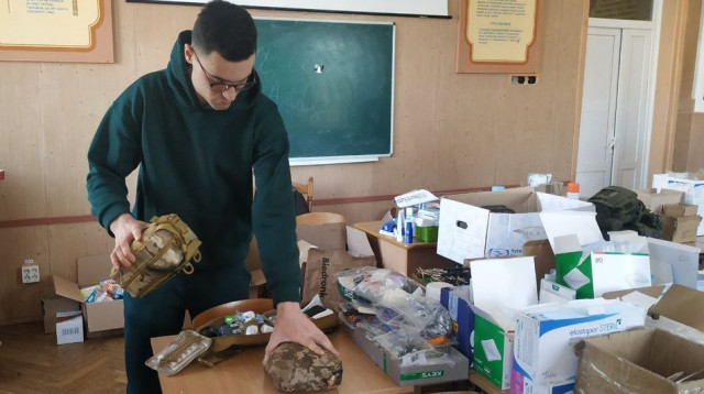 У Волинському медичному інституті волонтери формують військові медичні аптечки для надання першої медичної допомоги при пораненнях.