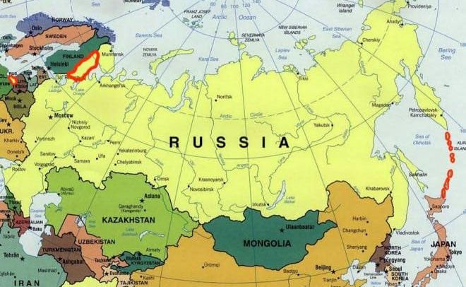 Японія продовжує вирішувати питання Курильських островів, які перебувають зараз у складі РФ. Прем'єр-міністр Японії Кісіда Фуміо наголошує, що питання Курильських островів ще не вирішене. Проте це не єдині землі, які незаконно приєднала Росія.