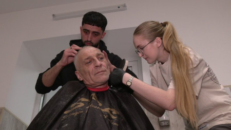«Приїхали, щоб відвідати військових, привезли їм смаколики і будемо їх стригти. Нас запросила моя сестра, тому що вона раніше їздила і проводила майстер-класи для дрібної моторики рук, щоб хлопці розвивали це. І вона запросила мене, оскільки була потреба в стрижках», – розповіла Вікторія.Першим захотів оновити зачіску військовий Юрій. У нього особливі побажання – стрижка має бути короткою і сучасною. Поки Вікторія та Роман виконували побажання пана Юрія, він розповів свою історію. 60-річний воїн – родом із Донеччини.