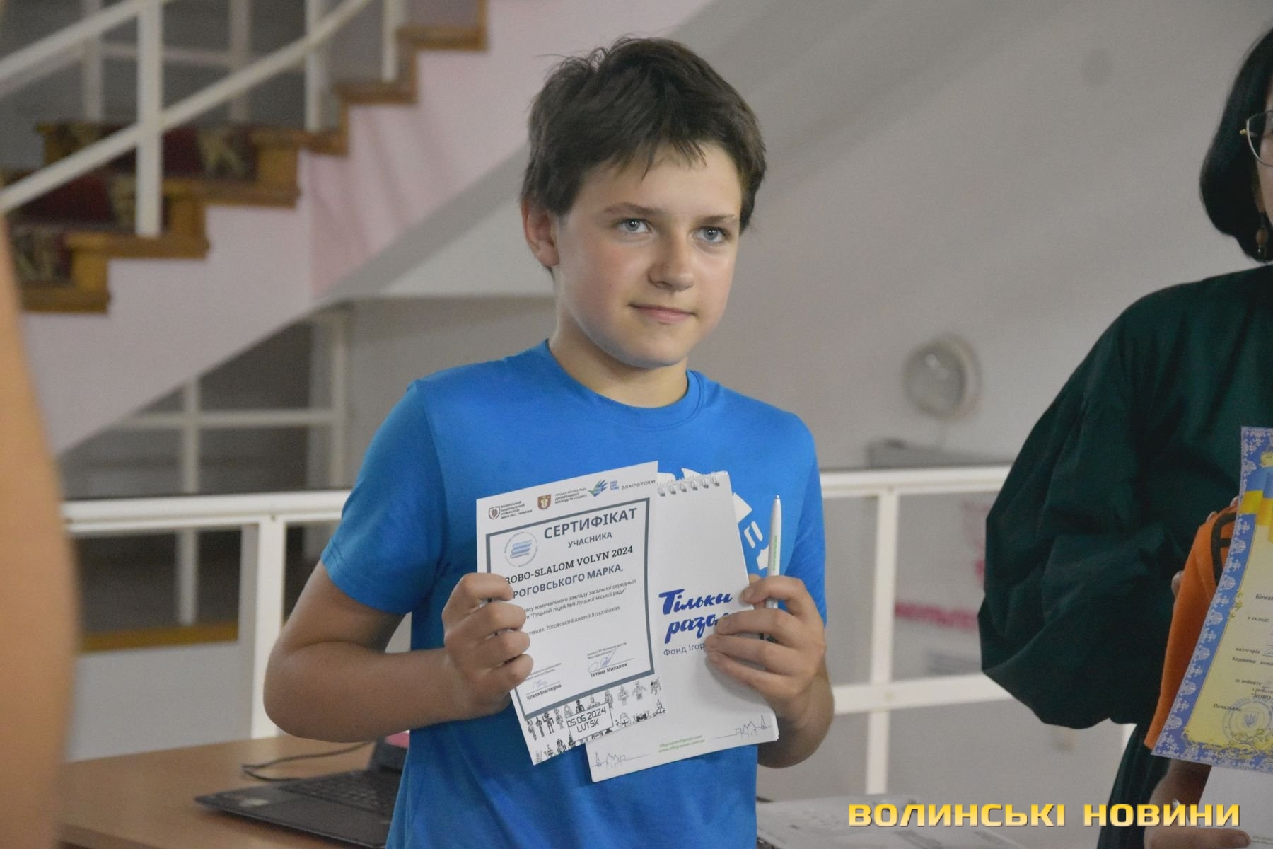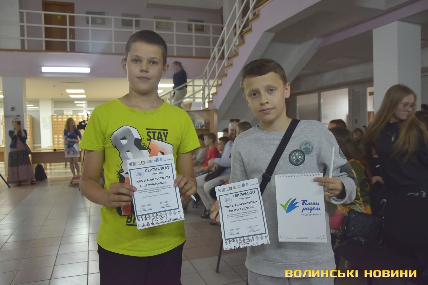 Перше місце в категорії слалом швидкісний здобули Юліан Головчук та Дмитро Назарук із Луцького ліцею №9. Їхній робот нещодавно виграв гранпрі всеукраїнського чемпіонату. Невдовзі хлопці поїдуть із ним представляти Україну на «Всесвітню олімпіаду геніїв» у США.«Це дуже цікаві люди. Один із них пише картини, інший програмує та грає у волейбол. А робототехніка – це завжди компроміс між програмуванням та конструюванням. У них склалася чудова команда, де є конструктор-винахідник і програміст, які доповнюють один одного. У хлопців великий екологічний проєкт, що його тепер представлять від України в місті Рочестері», – розповів про своїх учнів викладач Андрій Роговський.