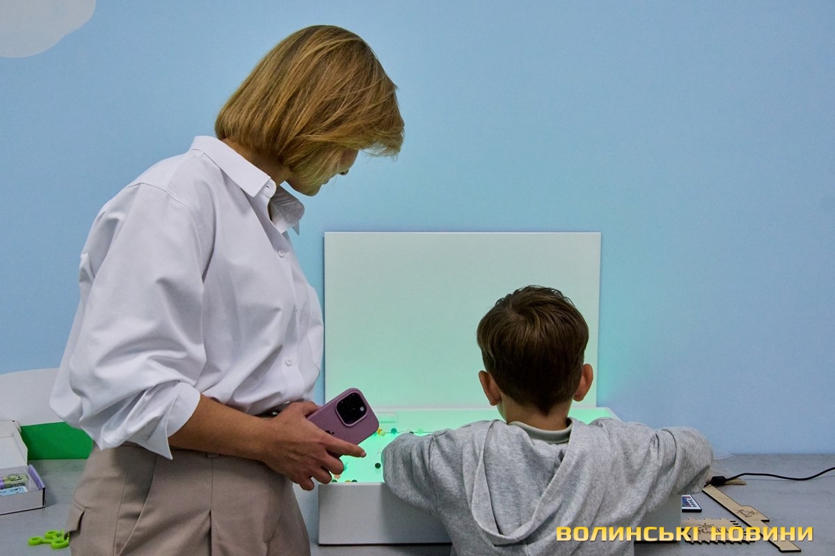 Директорка центру провела імпровізовану екскурсію закладом. Відчутно, що у цих стінах головними є діти. Вони тут – усюди, і усе тут – для них! У деяких класах проходять заняття, адже свято-святом, а навчальний процес перериватись не повинен. У LEGO-лабораторії, наприклад, частина діток розвиває дрібну моторику – працює з кубиками, а частина працює за комп’ютерами.