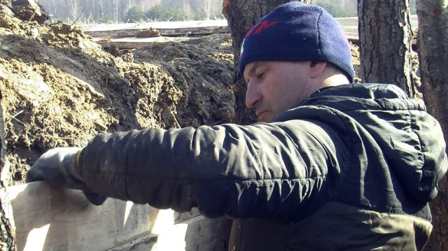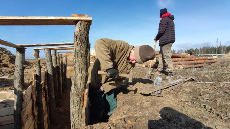На облаштування бліндажів Люблинецька громада ще не витратила ні копійки, каже Михайло Кухарчук. Все заготовляють своїми силами, працюють з місцевими мешканцями.Один із добровольців – Михайло Головій. Раніше чоловік працював на різних роботах на будівництві.