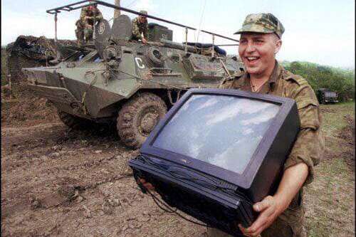 "Вчора Вовина дружина мікрохвильовку забрала, вентилятор, кавомолку, мультиварку", - розповідає окупанту його дружина, яка займається розподілом награбованого ним в Україні.