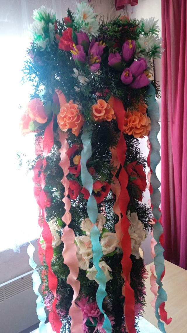 – з дрібних: незабудки, ромашки, волошки, нарциси, фіалки.