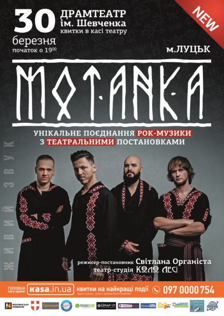 Презентація альбому гурту MOTANKA відбудеться 30 березня о 19:00 у Волинському облмуздрамтеатрі імені Т.Г.Шевченка.