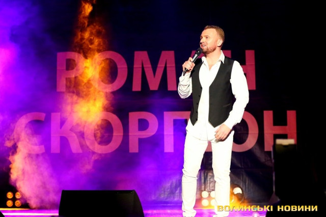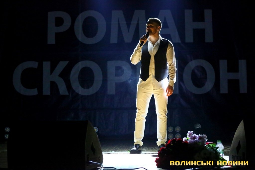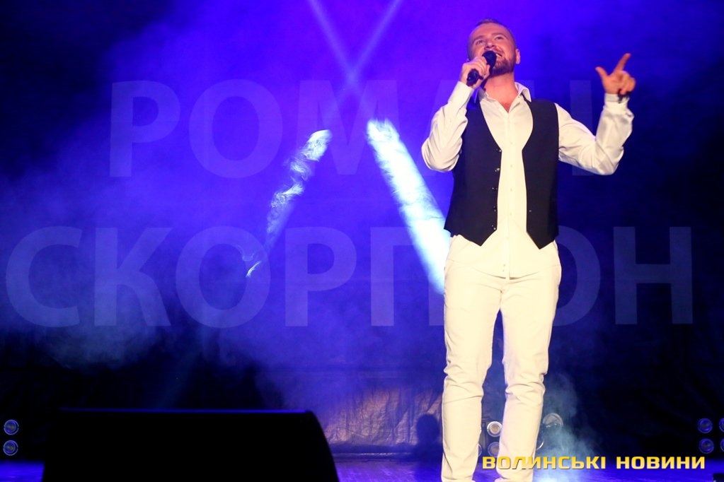 «Сказати, що я хвилююсь – не сказати нічого. Ваша присутність на сьогоднішньому концерті - це велике щастя для кожного з артистів і я дякую, що дали мені таку розкіш – співати для вас», - з такими словами Роман Скорпіон звернувся до луцької публіки та розпочав свій концерт.