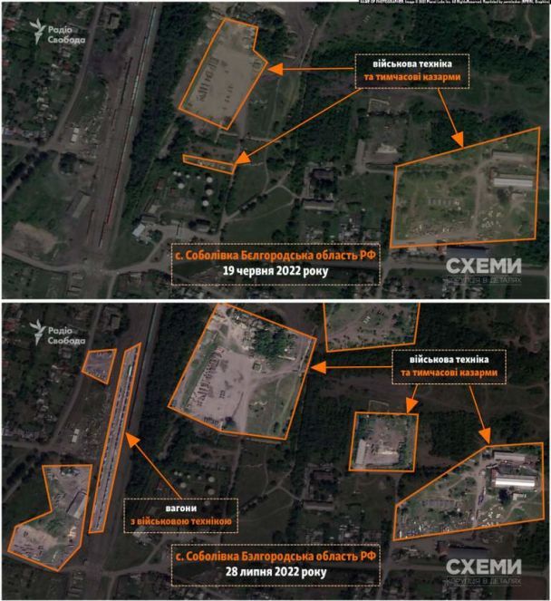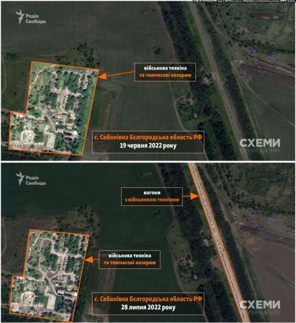 Як свідчать фотографії, російські окупанти частину військової техніки транспортують залізницею та звозять її до села Соболівка Бєлгородської області Росії, що поблизу Харківської області. У подальшому, на думку експертів, Росія може використати цю техніку для наступу на Ізюмському і Слов’янському напрямках. Окрім цього, супутникові фото від 28 липня фіксують збільшення кількості особового складу російської армії у порівнянні зі знімком з космосу цієї місцевості від 19 червня.