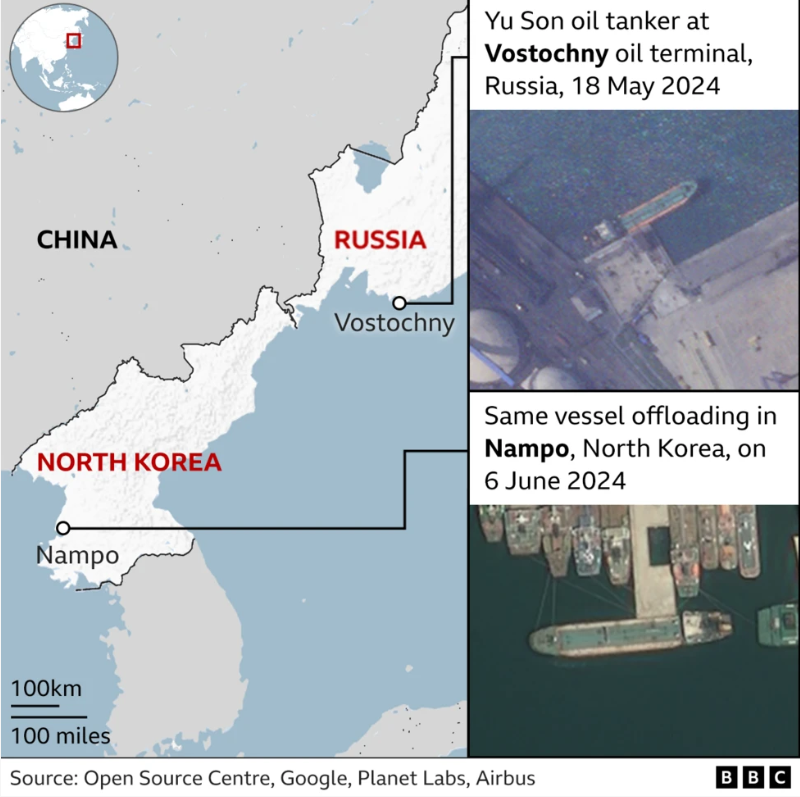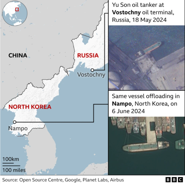 Провідні британські експерти та міністр закордонних справ Сполученого Королівства Девід Леммі сказали BBC, що, на їх переконання, цією нафтою Москва розплачується з Пхеньяном за зброю і солдатів, якими КНДР допомагає Росії воювати з Україною.