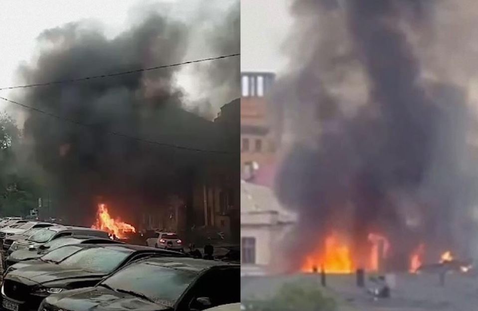 За даними соцмереж, внаслідок дронової атаки у центрі міста вирує масштабна пожежа, зокрема, палають автівки.