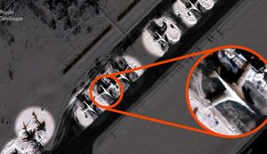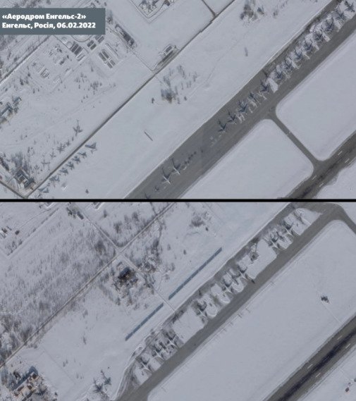На останньому детальному знімку супутникової системи Planet за 14 лютого 2022 року також не видно серйозних змін у кількості літаків, але поряд зі злітною смугою вже можна побачити понад 20 гелікоптерів, яких там раніше не було.