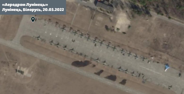На останніх знімках за 17 березня зміни вже відчутніші. Кількість літаків на злітній смузі збільшилася майже вдвічі. Серед них бачимо літаки, які через яскравий блакитний колір досить легко розпізнати навіть на знімках невисокої якості. Це російські бомбардувальники Су-34.Тільки 17 березня з аеродрому Ліди у напрямку України щонайменше дев’ять разів злітали Су-34 та ще двічі – Су-25, це підтвердили у Збройних силах України. Раніше про це повідомили білоруські активісти, які відстежують переміщення військової техніки для телеграм-каналу «Біларускі Гаюн».