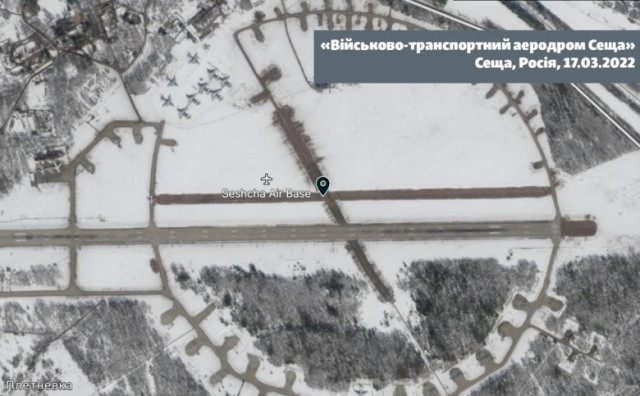 До початку повномасштабного вторгнення Росії в Україну, військово-транспортний аеродром Сеща у Брянській області слугував переважно для транспортних літаків ІЛ-76 та АН-124-100 («Руслан»). Приблизно за місяць до початку вторгнення Росії в Україну на ньому почали з’являтися бомбардувальники та винищувачі.Згідно з останніми супутниковими знімками Planet, станом на 17 березня на аеродромі Сещі стоять бомбардувальники Су-34. Їх теж можуть застосовувати проти цілей на півночі України. Це підтверджує те, що щонайменше один такий бомбардувальник Су-34 вже збили в Чернігівській області, а один із пілотів потрапив у полон. Полонений – майор, який раніше брав участь у бойових діях Росії в Сирії.