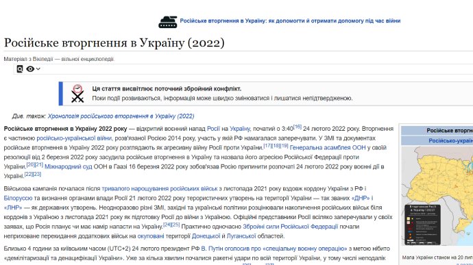 Російські пошукові системи тепер мають інформувати у пошуковій видачі про те, що онлайн-енциклопедія «Вікіпедія» порушує законодавство Росії, відмовляючись видаляти «фейки про спецоперацію в Україні». Які саме це статті, Роскомнагляд не уточнив.