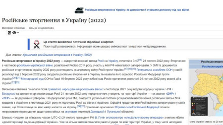 «На інтернет-ресурсі Wikipedia залишається невидаленим ряд матеріалів, визнаних забороненими, зокрема фейків про хід спеціальної військової операції на території України. У зв’язку з невиконанням обов’язку щодо видалення протиправної інформації Роскомнаглядом прийнято рішення про застосування примусового заходу у вигляді інформування пошуковими системами інтернет-користувачів про порушення іноземною особою російського законодавства», – йдеться в повідомленні.