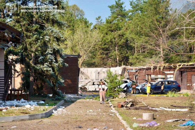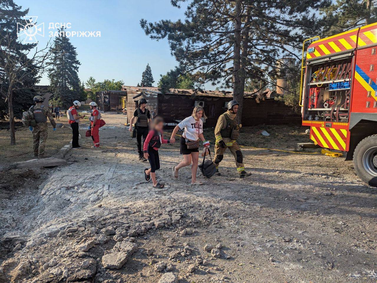 Як уточнили у ДСНС України, з 05:55 до 06:10 противник завдав ударів авіабомбами по території бази відпочинку в одному з населених пунктів Запорізького району.