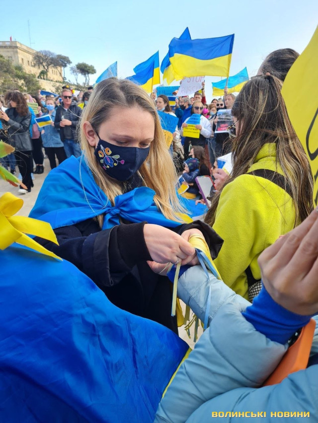 Голова Європейського парламенту Роберта Мецола є мальтійкою. До речі, нещодавно вона приїжджала до Києва. Ця жінка дуже підтримує Україну та нашого президента і робить усе для того, аби наша країна стала членом Євросоюзу. Це не може не мати впливу на мальтійців, бо для них Роберта Мецола – це передова особа, яка обіймає не останню посаду у Європі. Влада Мальти також робить усе, аби допомогти українцям. Водночас потрібно пам’ятати, що Мальта має розміри Луцького району, це країна, яка все імпортує до себе. Тобто вона не може дати нам стільки підтримки, як дають, наприклад, Польща, Німеччина та усі інші європейські країни. Але мальтійці роблять все, що можуть.Бачив у тебе в Instagram, що відвідувала акції на підтримку України. Розкажи, хто їх організовував, скільки людей приходило і де саме вони відбувалися?