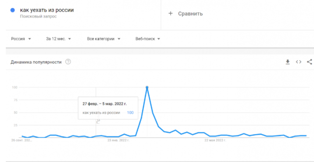 Пошуковий запит «як виїхати з Росії» знову на піку популярності в цій країні.