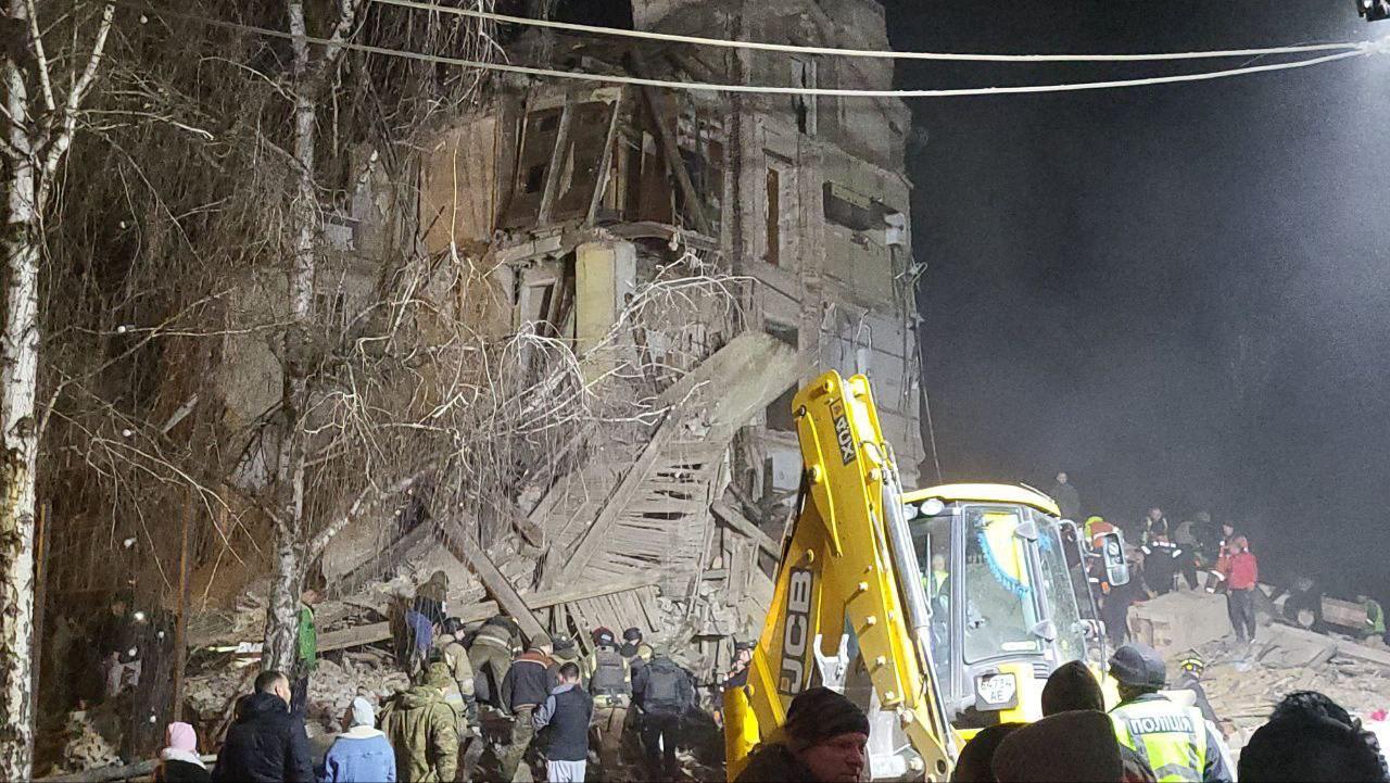 «На жаль, кацапня влучила на Святвечір балістичною ракетою в чотириповерхівку на 32 квартири», – зазначив Вілкул.Чотирьох людей дістали з-під завалів. Окрім них, ще семеро людей поранені – одна жінка у важкому стані, а всі інші – в стані середньої важкості.Читати ще: Через атаку окупантів на Хмельниччині пошкоджено підприємство, на Київщині – ЛЕП