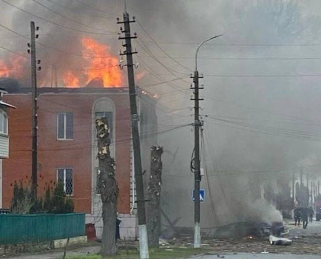 «Близько 09:30 зафіксовано влучання ворожого БПЛА (тип наразі встановлюють) у середмістя Новгорода-Сіверського. Удару завдано по будівлі державної податкової інспекції. Вибуховою хвилею пошкоджено фасади прилеглих житлових будинків та приватний автотранспорт», – інформував Селіверстов.Він також опублікував фото будівлі, охопленої вогнем.