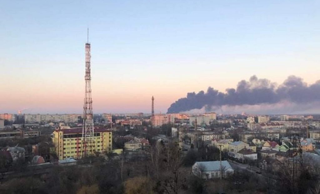 The airport hit in #Lviv The siren went off around 6am #RussiaUkraineWar #russianinvasion #StopRussia #ClosetheSkyoverUkraine pic.twitter.com/oXGBTaXer4