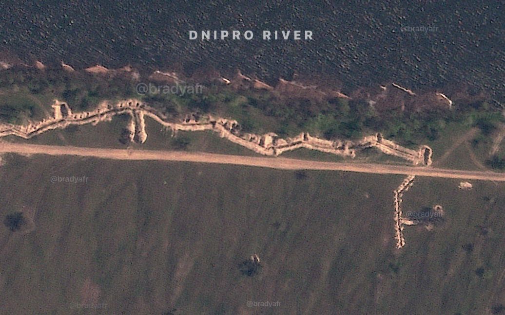 Russian forces in Ukraine have constructed a network of trenches along the left bank of the Dnipro River.