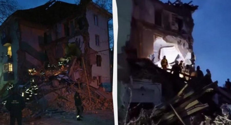 Уночі під час атаки безпілотників, імовірно, внаслідок роботи російської протиповітряної оборони відбулося руйнування під'їзду житлового будинку в Сизрані Самарської області. Під завалами шукають людей.