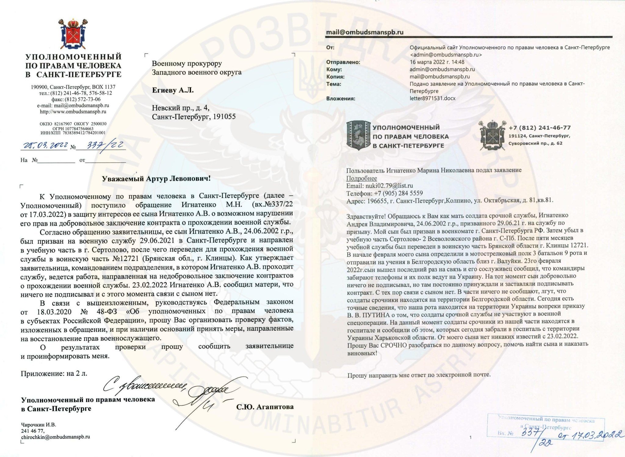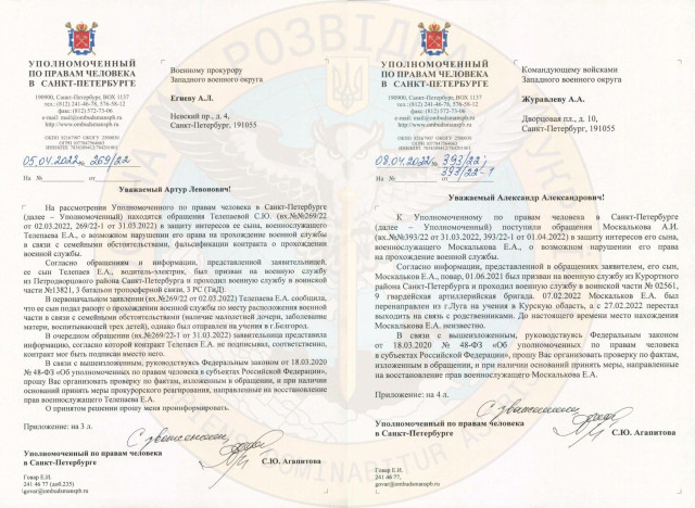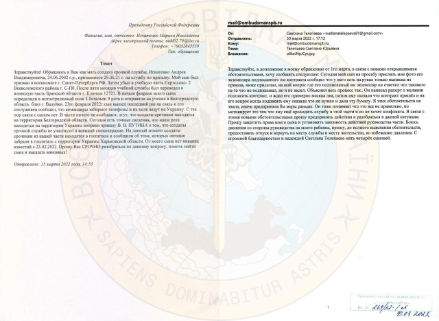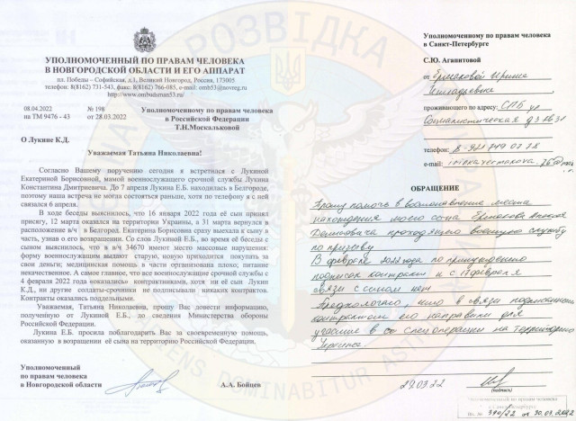 Матері російських строковиків, розуміючи невідворотність смерті їхніх дітей, звертаються зі скаргами на незаконні дії командирів до уповноваженої з прав людини у рф Тетяни Москалькової, але у відповідь отримують чергову брехню та відписки.