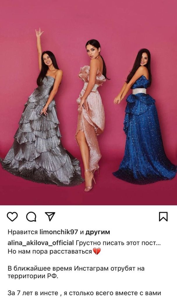 «Нам час розлучатися... Найближчим часом Instagram відрубають на території РФ. За сім років я стільки всього разом з вами прожила», – написала вона, опублікувавши, попри смуток, досить святкову світлину.