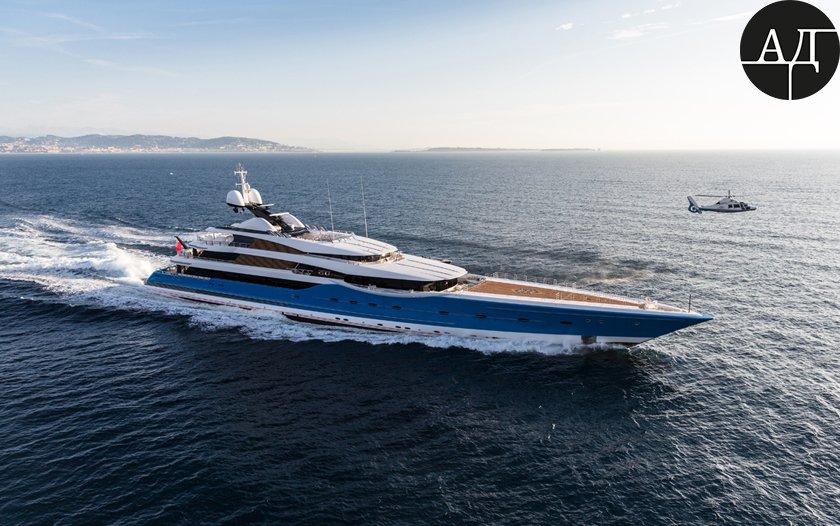 Яхта за спиною (або на голові) у Костянтинівського дуже схожа на Dilbar Алішера Усманова: кращу моторну яхту в світі, вартість якої оцінюють в 600 мільйонів доларів